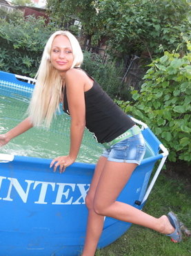 Надев солнцезащитные очки, обладательница груди маленького размера пошла купаться в бассейне под открытым небом. Тощая соблазнительница с гладко выбритым лобком не стесняется заходить в воду без купальника, ведь это дает ей возможность не только охладить горячие эрогенные зоны, но и показать их во всей красе.