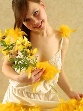 Длинноволосая флористка живет в частном доме и имеет свой небольшой огородик, где выращивает цветы. Дома молодая красавица ходит в основном в нижнем белье, для того, чтобы быть готовой в любой момент раздеться и ль на пол, чтобы ее молодой человек покрыл ее тело цветами. Краля готова оперативно снять с себя не только лифчик, но и трусики.