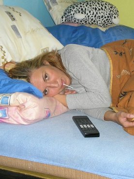 Кудрявая красавица с рыжими волосами только что проснулась и не успела надеть на себя даже нижнее белье, так как спала полностью голой. Рыжеволосая скромница с небольшим количеством волос на лобке, сначала просто валяется на кровать, а потом встает и подходит к окну, так и не надев на голое тело даже трусиков.