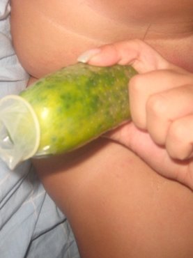 Неудовлетворенная барышня раскрыла зеленый халат и легла на кровать расставив ноги. Взяв огурец, блондинка смазала его смазкой и ввела в вагину, получив огромное удовольствие. Краля трахает себя овощем. засовывая его глубоко в манду, и получая наслаждение ощущая, как посторонний предмет растягивает сладкое лоно изнутри.