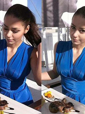 Длинноногая краля работает моделью и не просто дефилирует по подиуму, но и принимает участие в эротических фото сессиях, во время которых становиться на разные фоны в голом виде и украшает их упругими титьками. Молодая модель не стесняется светить милыми молочными железами и никогда не прикрывает их руками.