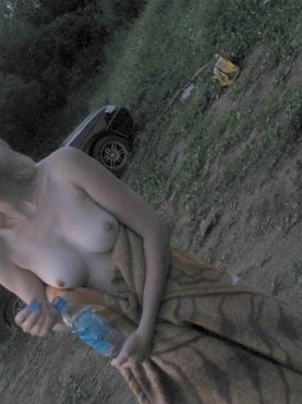 Мадам припарковала автомобиль на обочине и пересела на переднее пассажирское сидение, чтобы там оголиться. Бестия быстро сняла с себя одежду и нижнее белье, открыв вид на объемные титьки и начала запечатлевать их на фото, направляя объектив не только на молочные железы приличного размера, но и ухоженные дырочки.