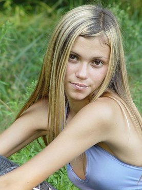 Молодая чика выехала на природу со своим парнем, который не только уговорил ее раздеться догола, но и согласиться на откровенную фото сессию, в ходе которой с удовольствием позировала сидя на раскладном кресле и расставляя в стороны ножки, а потом собралась и пошла к реке, чтобы намочить обнаженные прелести и немного охладиться.