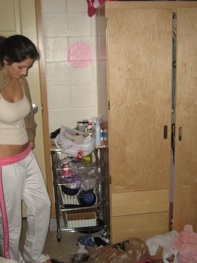 Темноволосая потаскушка начала позировать голышом на диване, но потом надела чулки и другие элементы нижнего белья, которые вскоре все-равно сняла. Принимая непристойные положения развратная брюнетка светит своей немного небритой промежностью и раздвигает ноги настолько широко, насколько у нее это получается.