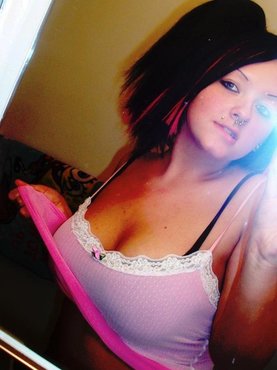 Молоденькая симпатяга с заплетенными в косички волосами подошла к зеркалу с фотиком в руках и спустила красную майку, чтобы высвободить объемные буфера. Великолепная брюнетка не стесняется запечатлевать большие титьки и даже возбуждается от их вида, что видно по ее мокрой писечке, которую милая шалашовка тоже показала объективу.