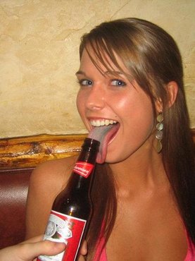 Искупавшись, стройная баловница решила расслабиться и выпила бокал светлого пива. Алкоголь в женской голове пробудил в даме желание раздеться и из-за этого светловолосая вертихвостка сняла с себя бежевые чулки и оставила свое молодое тело абсолютно без ничего, при этом немного стесняясь своей неприкрытой писечки.