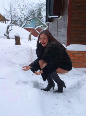 В новогоднюю ночь сексапильная мамка пошла гулять на площадь к большой елке и, став возле нее, решила показать какое на нижнее белье на нее надето. Распахнув шубу снегурочка открыла вид на полуголое тело не испугавшись мороза. После этого красотка еще не раз позировала в откровенном виде, а иногда оставалась и совершенно голенькой.