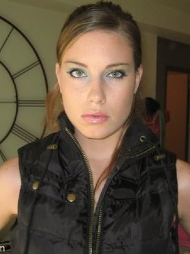 Длинноволосая брюнетка с отличным телом слезла с дивана и, сидя возле него на полу, стала стягивать с себя черную кофту. В скором времени соблазнительница по имени Аня осталась с голым торсом и начала позировать в синих колготах, которые через время сменила на белые и засунула в них шаловливую ручку чтобы потрогать писечку.