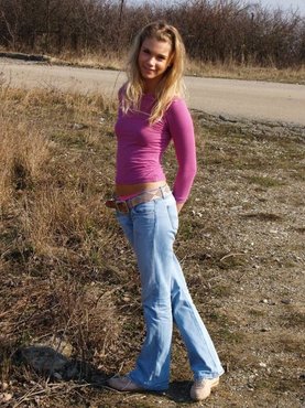 Длинноногая зазноба со стройным телом не надела под розовую юбку трусики и легла на белый диван, чтобы расставить ножки и показать во всей красе сладкую киску. В скором времени нимфа сняла с себя голубой топ и юбку, а затем начала позировать в голом виде, стараясь выглядеть как можно более сексуальной.