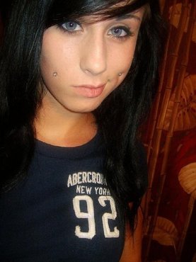 Темноволосая неформалка носящая очки решила поиграть в видеоигры на консоли и для этого вошла в гостиную. Когда девке с пирсингом и татуировками стало жарко, она сняла с себя белую майку и черный лифчик и открыла вид на свои титьки. Оставшись с голой грудью, телочка продолжила нажимать кнопки на джойстике.