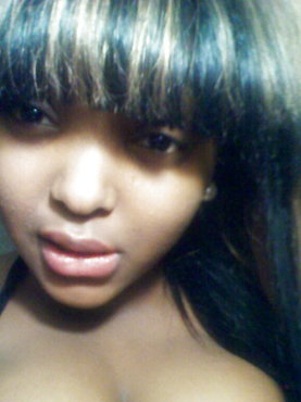 Оставив на себе только черные чулки и трусики, темнокожая чика с маленькими сиськами села в кругу пятерых мужчин и стала отсасывать их вставшие члены. Больше всего худой негритянке нравилось полировать большие фаллосы, но и чуваком со средним размером елды она не обделяла вниманием. После группового минета афроамериканская брюнетка разрешилась всем желающим накончать ей на лицо.