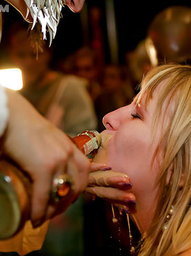 Пьяные цыпочки согласились на групповуху в ночном клубе