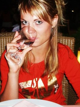 Заводная блондинка на столе дразнит свою писечку бутылкой вина