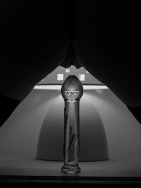 Голые милашки расставили ноги и вгоняют в киску стеклянный фаллоимитатор